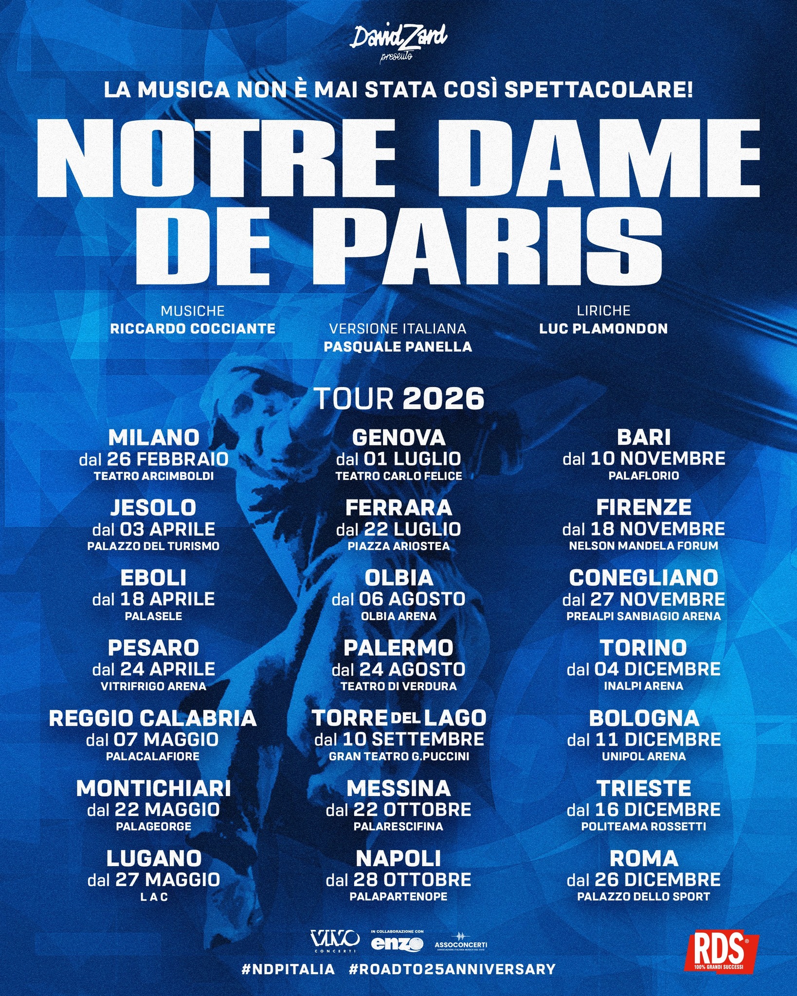Torna al Palacalafiore di Reggio Calabria il colossal Notre Dame de Paris dal 7 al 9 maggio 2026, l'Opera Moderna che ha cambiato la storia dello spettacolo dal vivo! Biglietti online su www.ticketone.it e nei punti autorizzati Oltre ai serali, previste ogni giorno repliche mattutine per le scuole! Informazioni 0968441888
