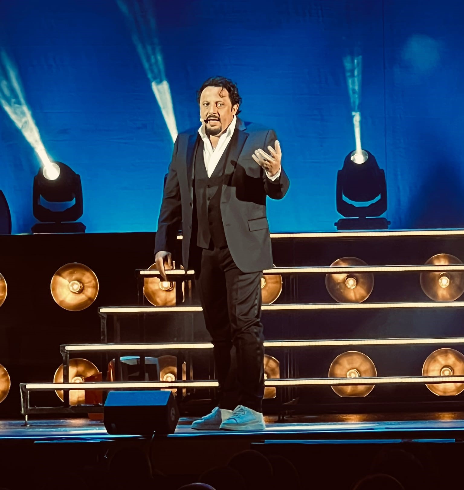 Uno show comico irresistibile che ha fatto letteralmente esplodere di risate contagiose il palasport, tra battute, interazioni con il pubblico, racconti esilaranti della sua gioventù, dai tanti “no” ai provini di attore fino ai primi amori in una scomodissima utilitaria disegnata da Giugiaro. Irrefrenabili le risate nella parodia di “Radio Maria”, con lo scambio di lettere tra Corinzi e Romani. Non sono mancate apprezzatissime gag in perfetto dialetto calabrese premiate da lunghi applausi.