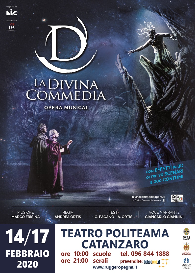E’ stato un autentico trionfo quello registrato dal musical evento “La Divina Commedia” di Marco Frisina con la regia di Andrea Ortis, prodotto dalla Mic e organizzato al Teatro Politeama di Catanzaro da Ruggero Pegna per “Fatti di Musica 2020”, il suo festival del live d’autore giunto alla trentaquattresima edizione.