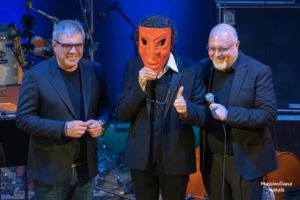 Cammariere, in forma davvero smagliante, è sceso simpaticamente tra il pubblico mentre i suoi musicisti proseguivano a suonare in acustica, salutando personalmente molti spettatori che, immancabilmente, hanno approfittato dell’inattesa sorpresa per immortalarsi in foto e selfie. Un live da incorniciare che ha chiuso nel modo migliore il festival, suggellato da una lunga standing ovation finale e dalla graditissima grande maschera di porcellana che I Vacantusi hanno regalato a Cammariere, simbolo della loro stagione teatrale.