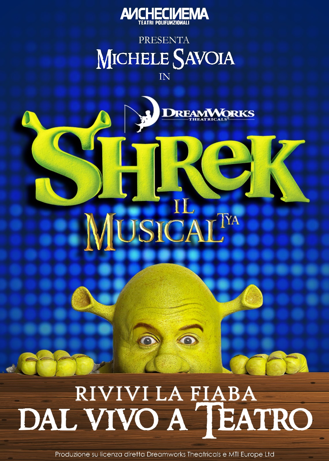 Shrek il Musical, la grande fiaba in teatro, una nuova produzione di Anche Cinema srl per la regia di Graziano Galatone, il 2 marzo alle ore 21:00 al Teatro Politeama di Catanzaro, con un grande cast, effetti speciali e un suggestivo allestimento scenotecnico.